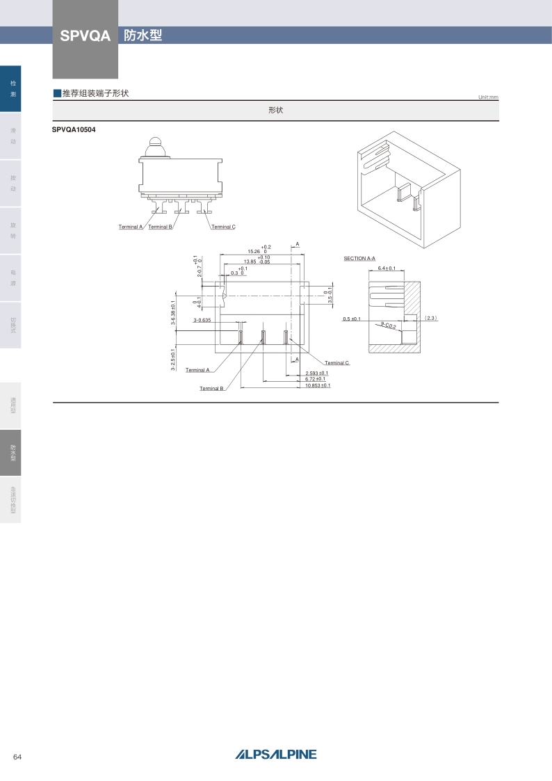 SPVQA10604 照片 1 2 Non shorting Push 压入 1±0.5N 无突起 R型 6.4×15.2×7.95mm