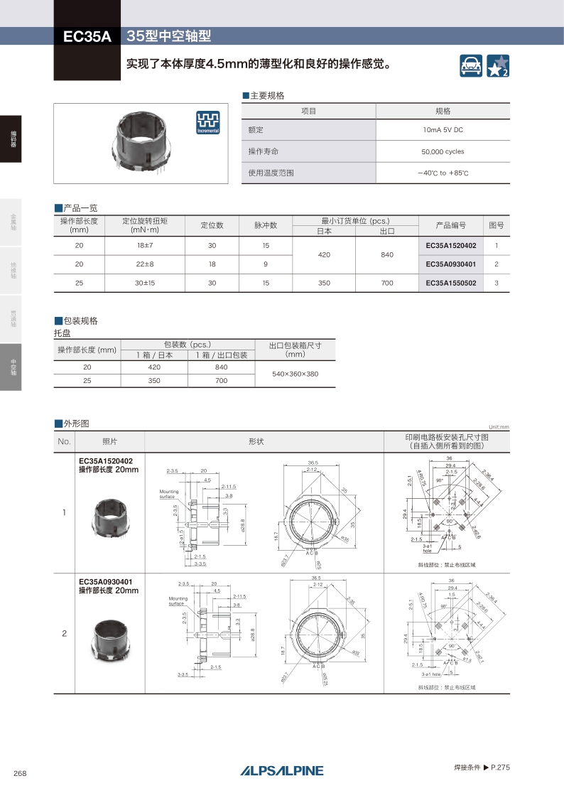 采购:EC35A系列——ALPS中空轴编码器