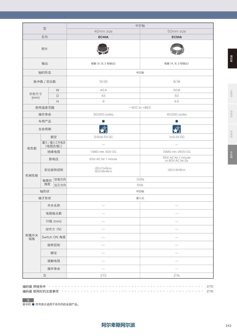 采购:EC40A系列——ALPS中空轴编码器