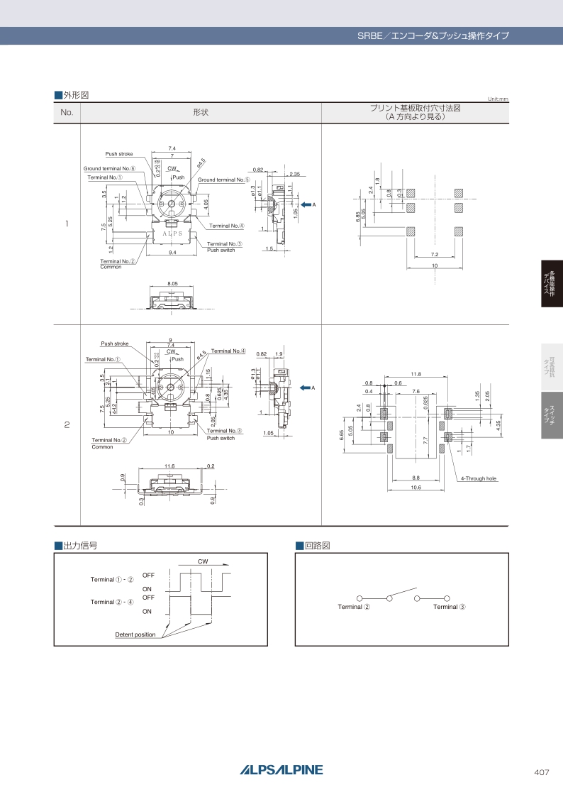 SRBE系列可以利用装备侧面空间的小型多功能装置。功能:中央按动和编码器 ・ 尺寸(W×D×H):8.05×11.0×2.35mm(表面贴装式) ・ 最大额定值:1mA 5V DC。