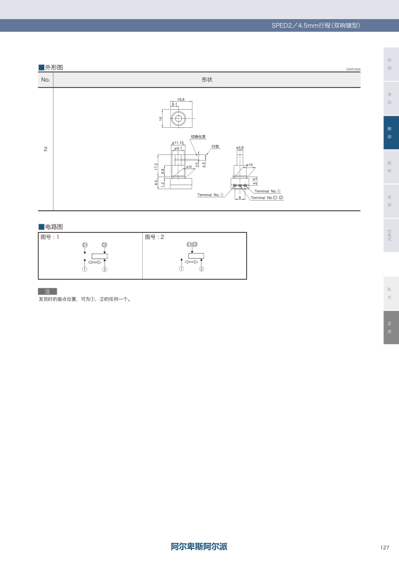 SPED220200 照片 Non shorting 4.5mm 4.17±0.74N PC board 2 1 Alternate For PC board 16.8×14.0×9.5mm