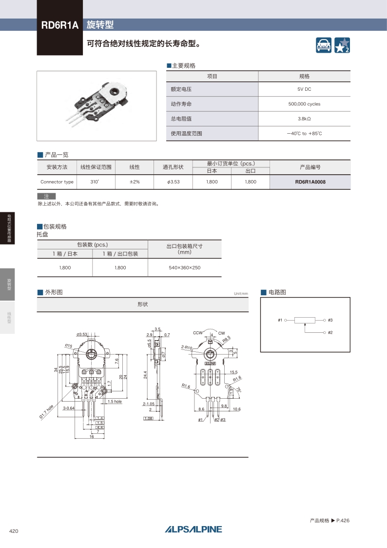 RD6R1A0008——ALPS电阻式位置传感器