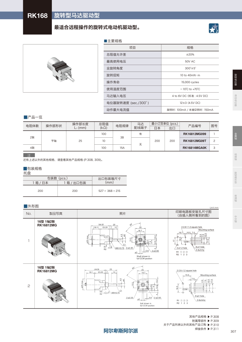 采购:RK168系列——ALPS马达驱动金属轴电位器