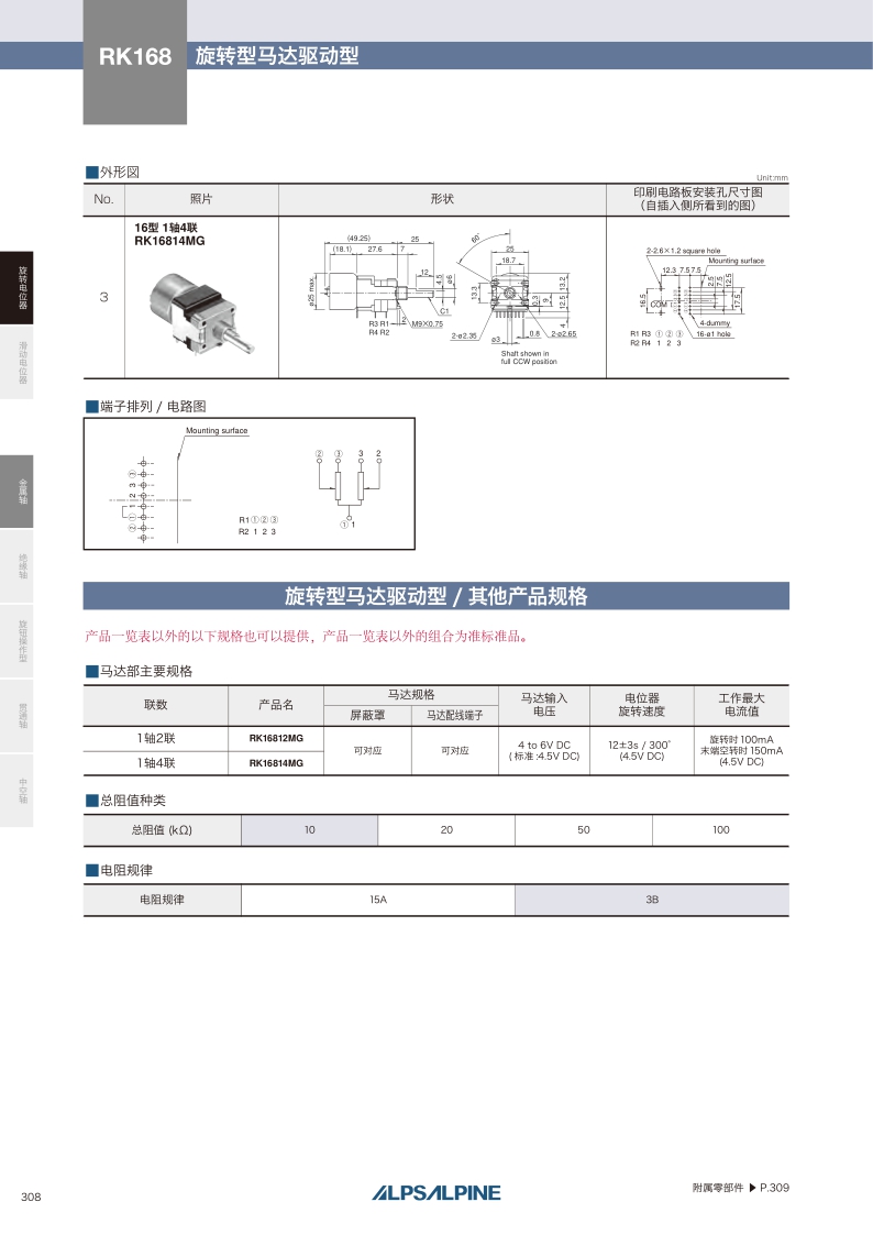 RK168系列——ALPS马达驱动金属轴电位器