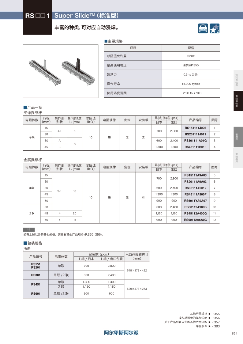 RS301系列——ALPS滑动电位器