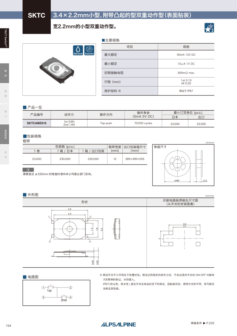 采购:SKTCABE010——ALPS轻触开关