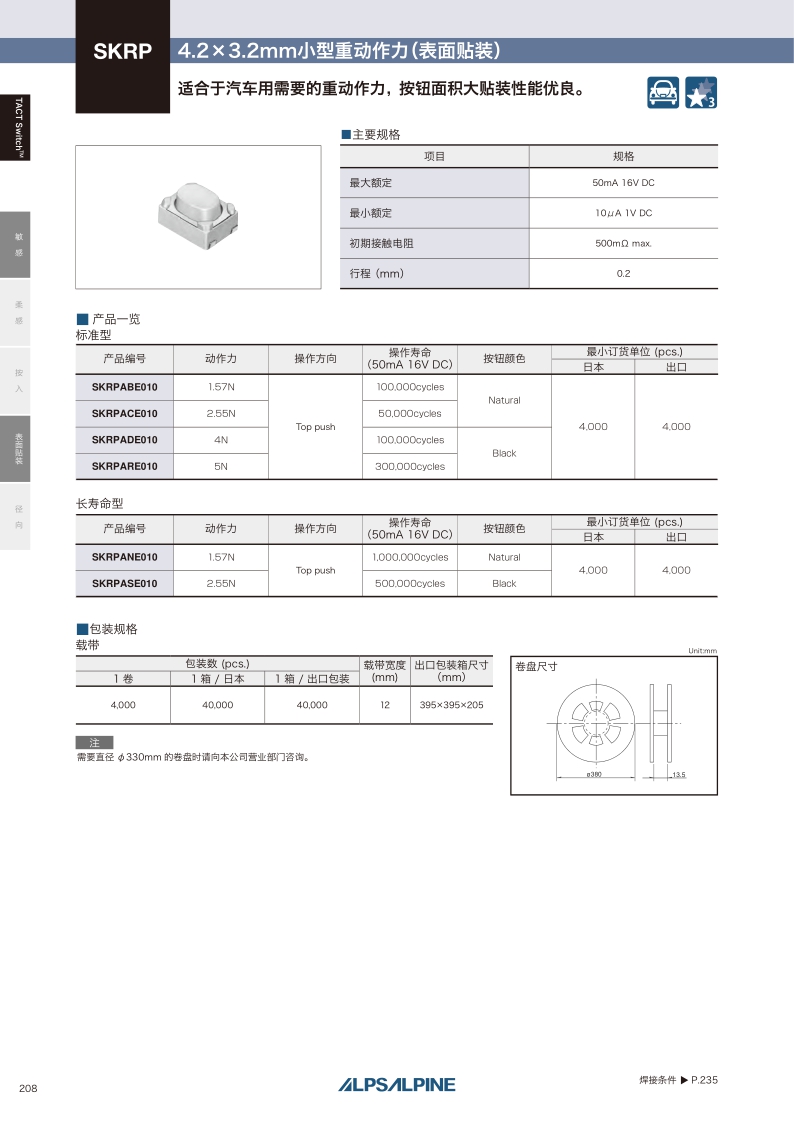 我司是ALPS授权代理商,ALPS系列产品均有在售,需要了解价格、包装数,交期以及产品资料请咨询在线客服!