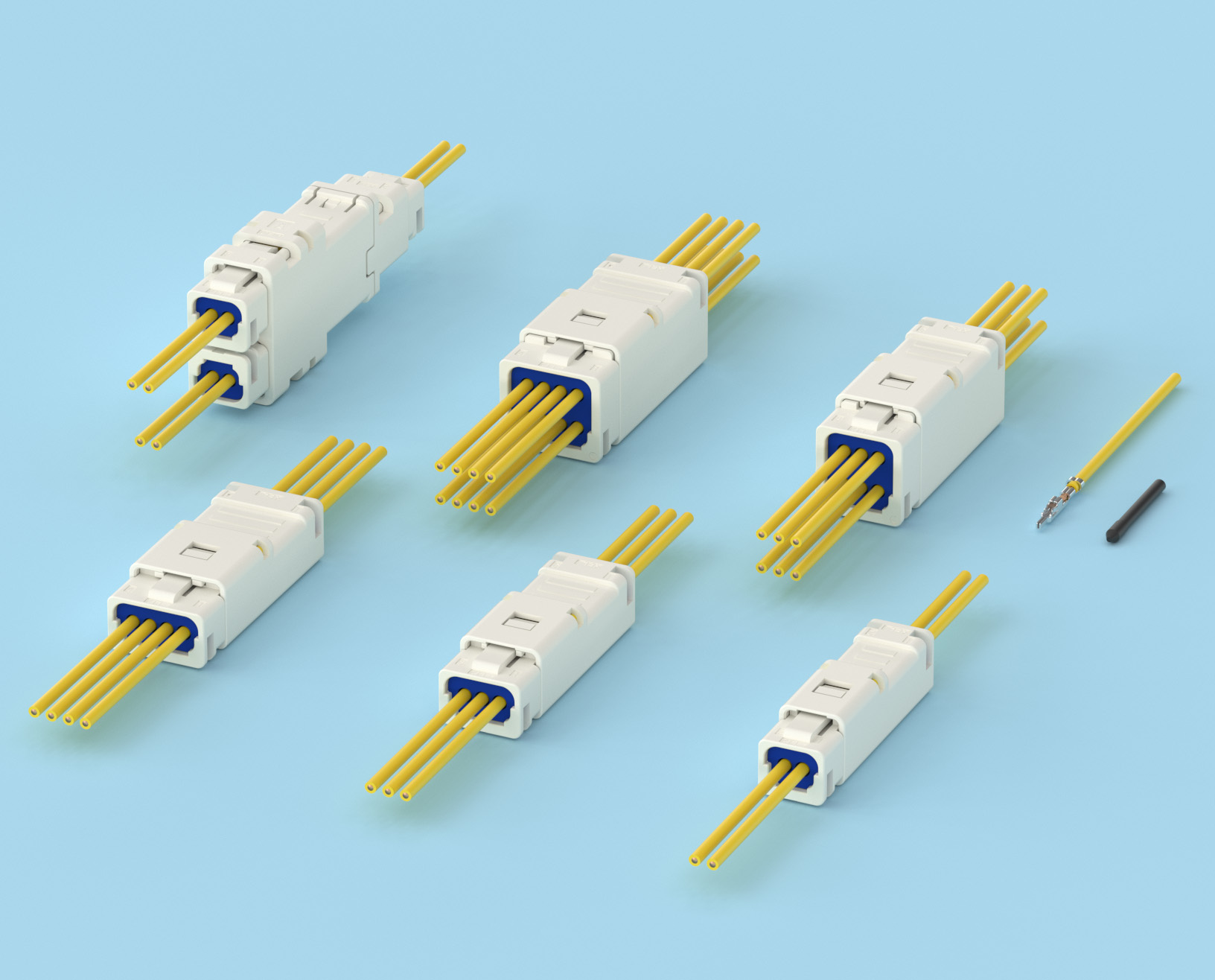 - 阴阳端子的四点接触确保始终稳定的接触。