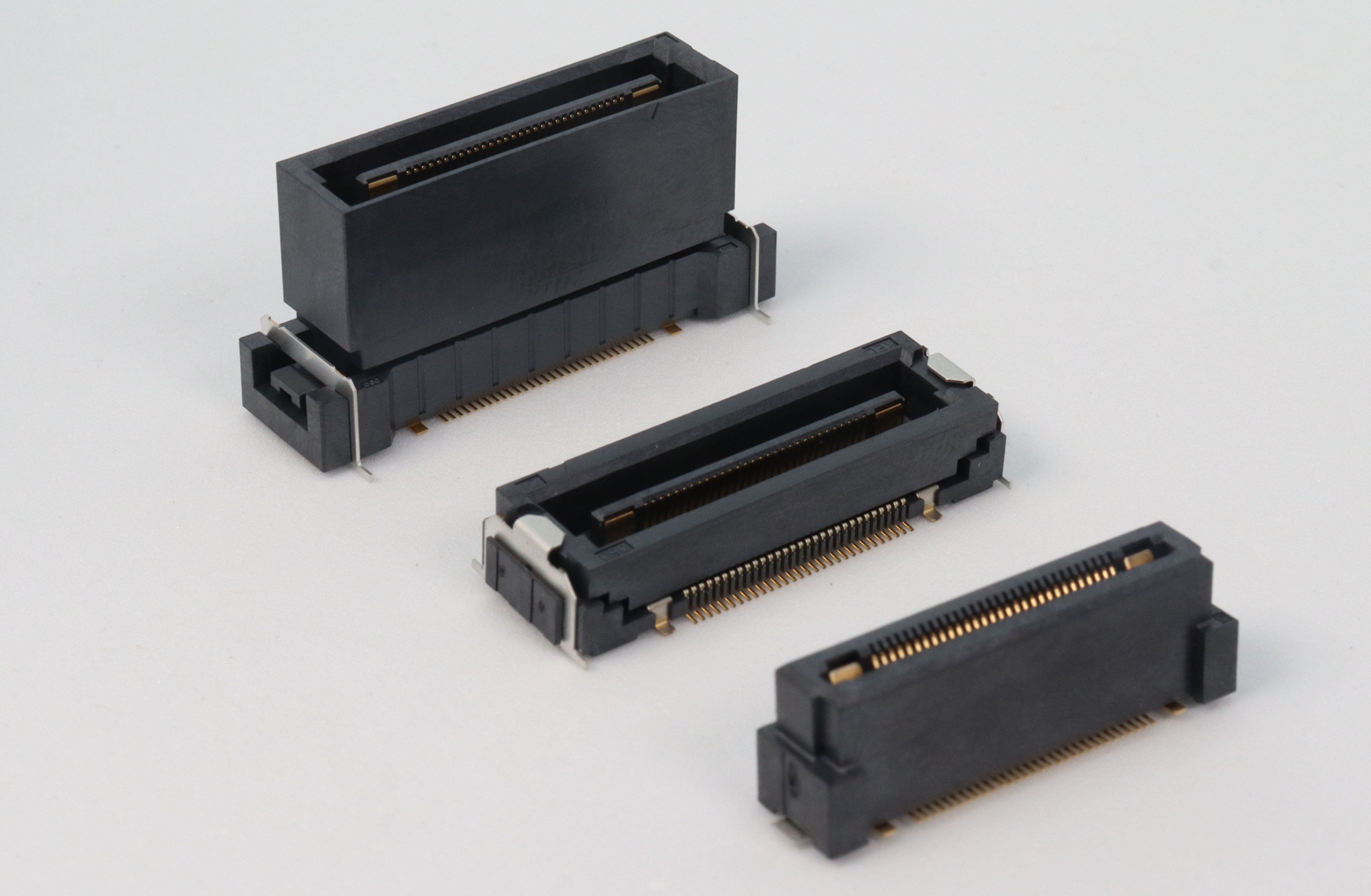 高速传输兼容0.5mm间距浮动连接器/带电源端子型。0.5mm间距浮动连接器“DT系列”型带电源端子。电源有4个端子,每个端子额定电流为6.0A。